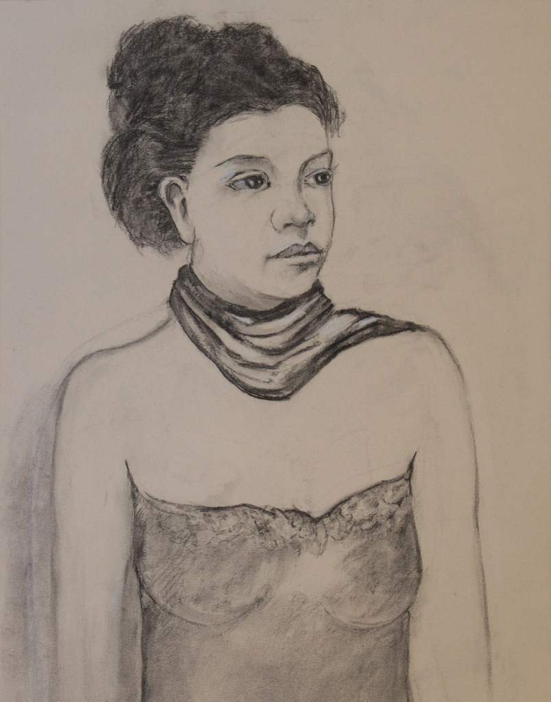 portretstudie, houtskool op papier