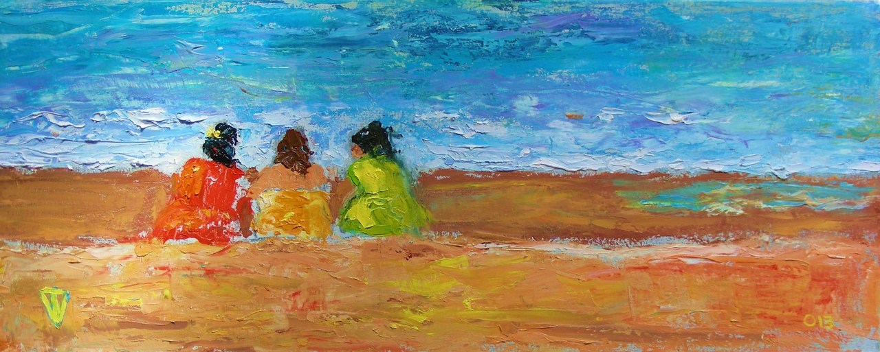's Morgens heel vroeg op het strand, zaten deze drie vrouwen al hun geheimen uit te wisselen.