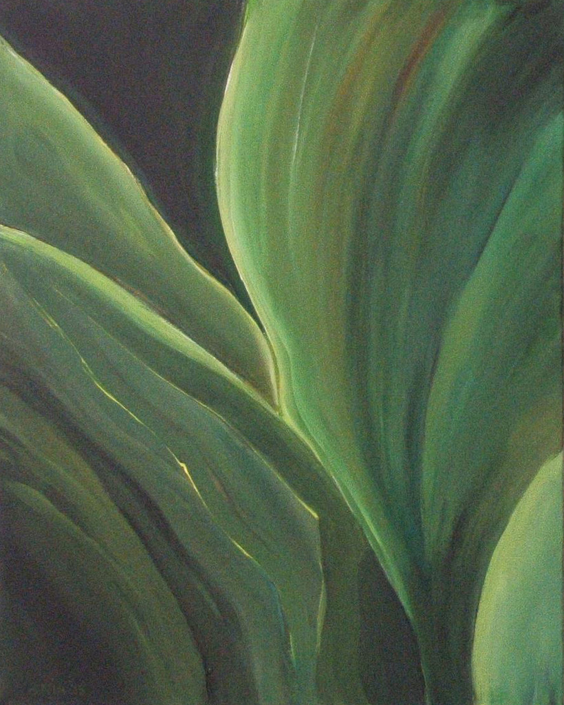 Vormimpressie van een agave in verschillende kleuren groen.