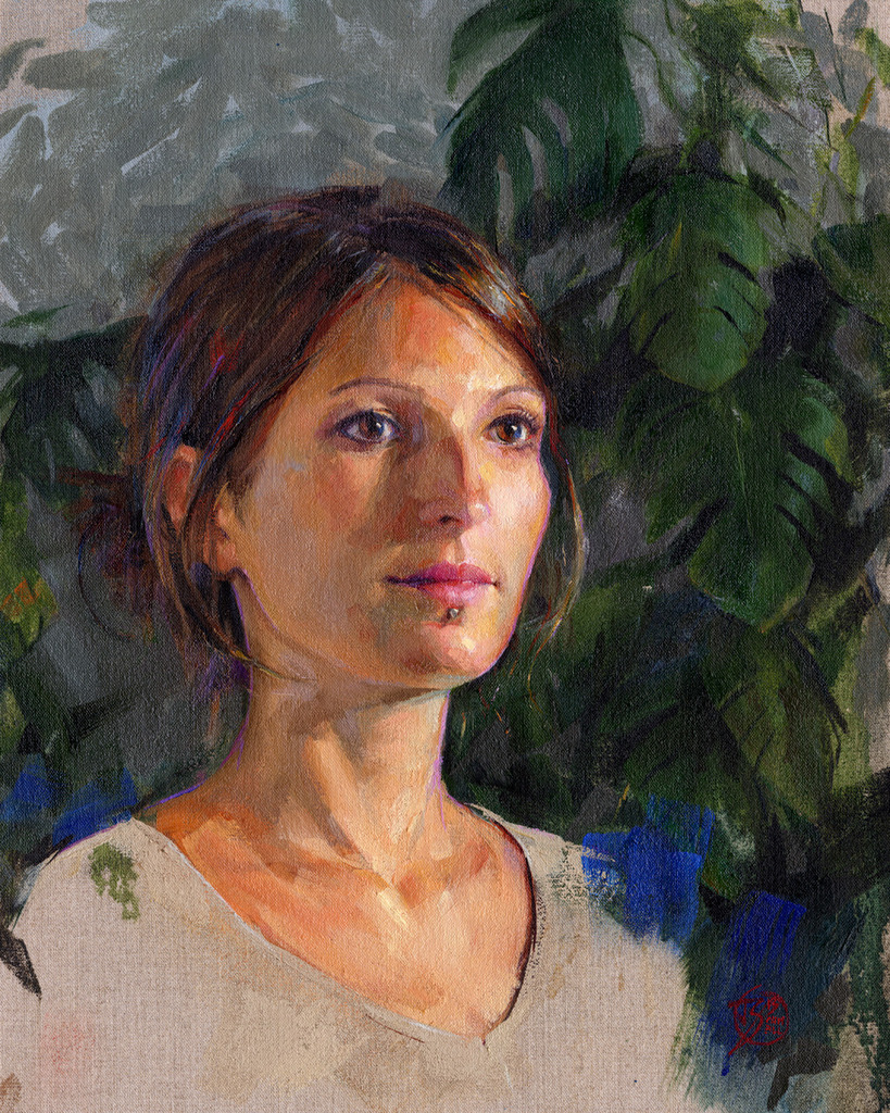 Meisje Vrouw Portret Gezicht Woman Oil Canvas Olie Doek Portrait Planten Gekleed Girl Face Hair Kleur Color Nia Duits
