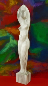 Bij mijn marmeren beelden ben ik geinspireerd door de vrouw, het begin van het leven en natuurlijke vormen.