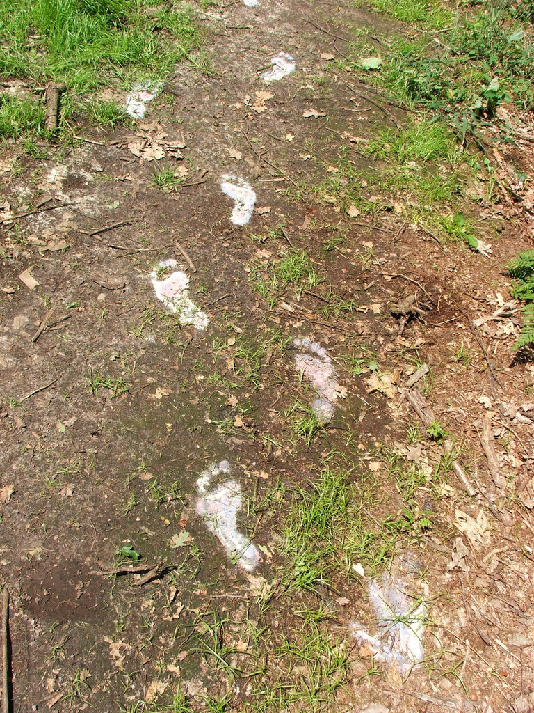 Serie "voetstap" met gekleurd zand is een afdruk gemaakt in de natuur.