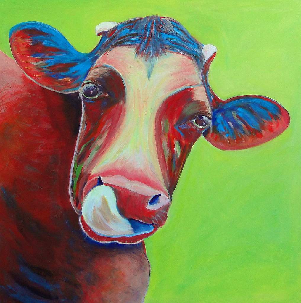 Acryl Portret Kleurrijk Dier Koe Paneel