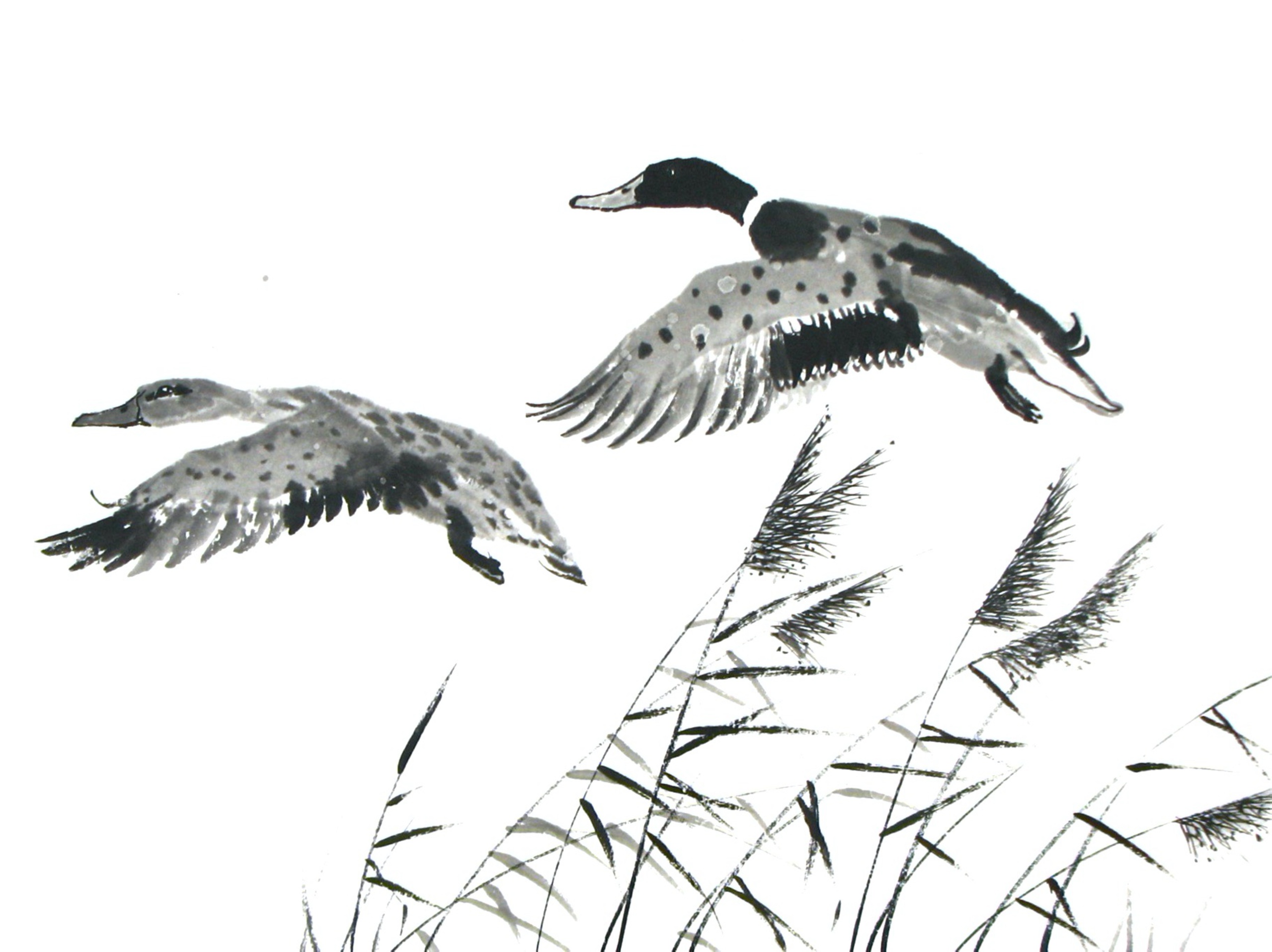 Natuur Painting Inkt Birds Vogels Wild Zen Schilderen Nature Eenden Rijstpapier Ink Ducks Ricepaper Sumi-e